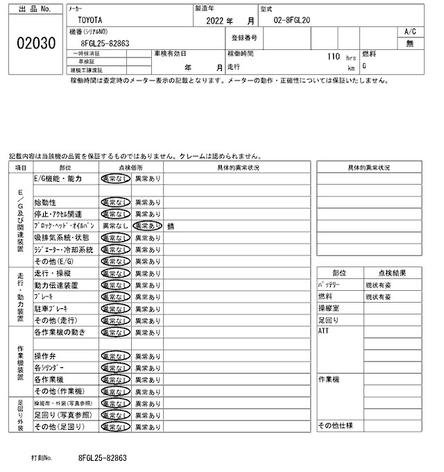 Год выпуска2022 Кузов02-8FGL20 Комплектация FORKLIFT