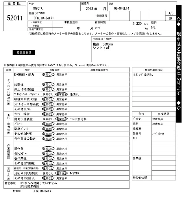 Год выпуска2013 Пробег 6 000 км Кузов02-8FGL14 Комплектация FORKLIFT