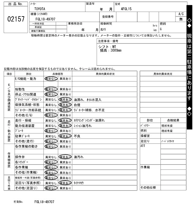 Кузов4FGL15 Комплектация FORKLIFT