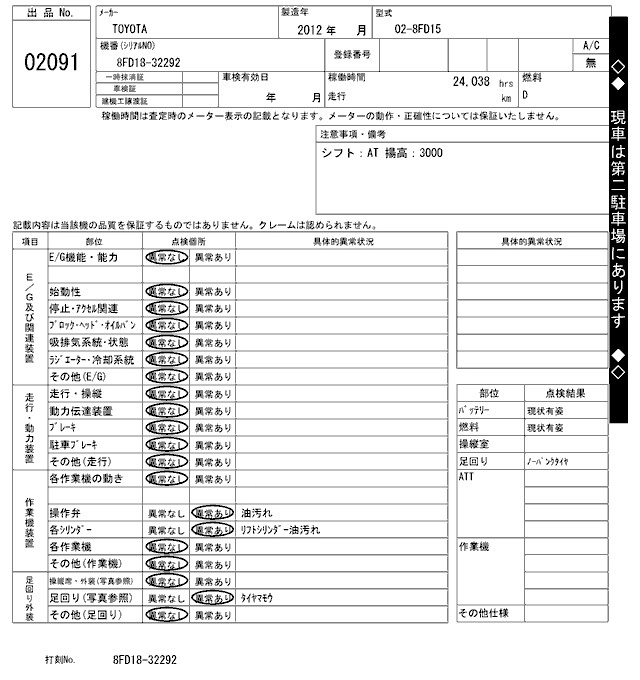 Год выпуска2012 Пробег 24 000 км Кузов02-8FD15 Комплектация FORKLIFT