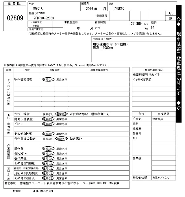 Статус выставлен на аукцион Лот 2809 Аукцион ARAI Kenki Дата аукциона 10.03.2026