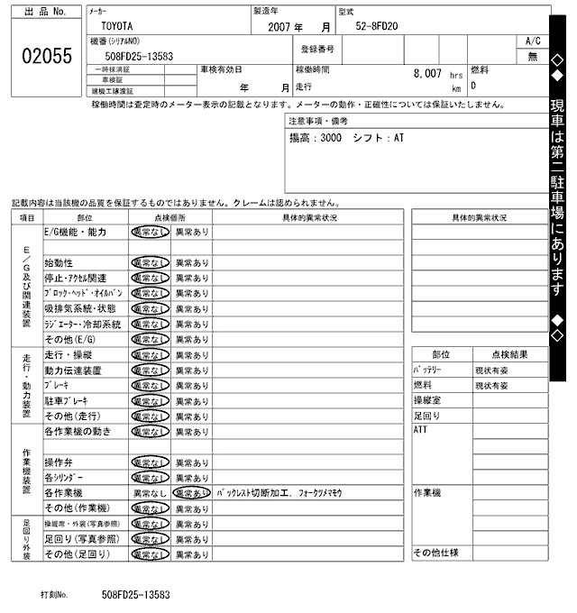TOYOTA OTHER 2007 г., лот № 2055