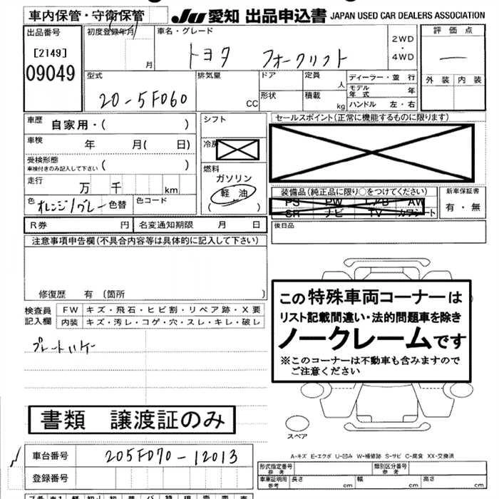 Статус выставлен на аукцион Лот 9049 Аукцион JU Aichi Дата аукциона 12.03.2026