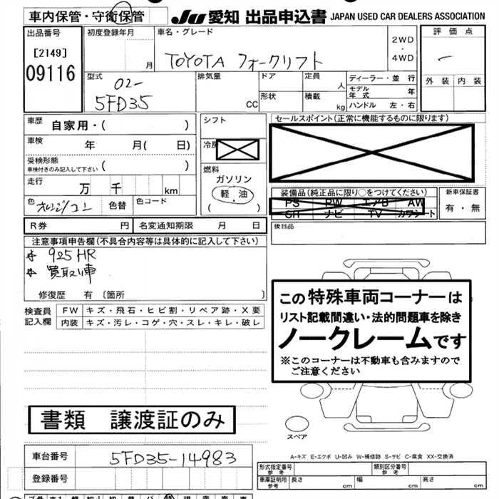 Кузов02-5FD35 Комплектация FORKLIFT