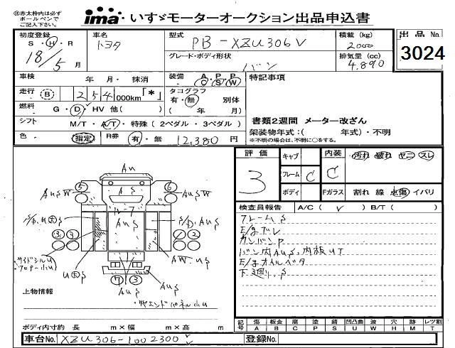 Статус выставлен на аукцион Лот 3024 Аукцион Isuzu Kyushu Дата аукциона 12.03.2026