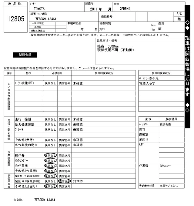 Статус выставлен на аукцион Лот 12805 Аукцион ARAI Kenki Дата аукциона 17.03.2026