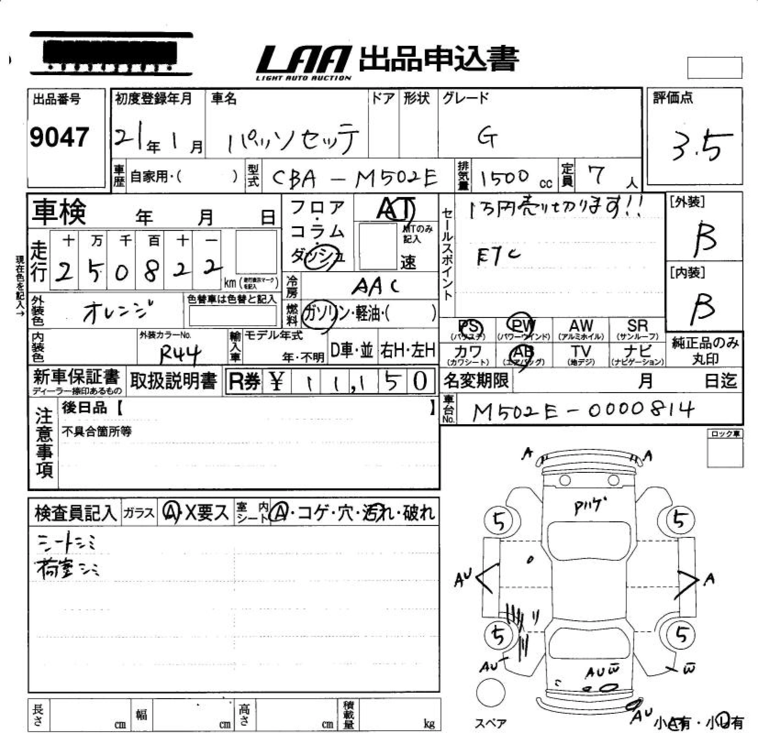 Статус продан Лот 9047 Аукцион LAA Okayama Дата аукциона 23.01.2026