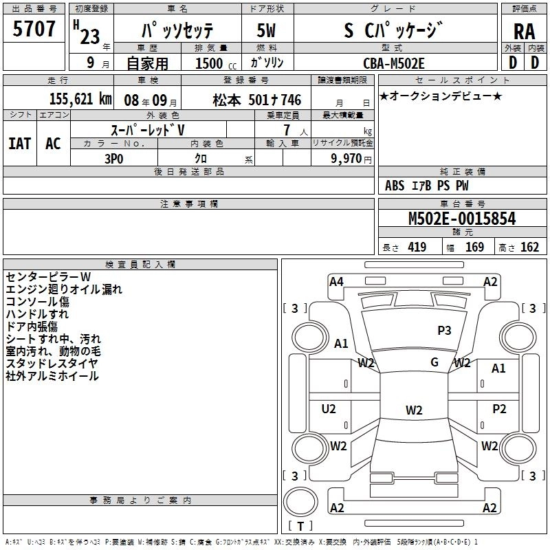 Статус выставлен на аукцион Лот 5707 Аукцион TAA Chubu Дата аукциона 12.03.2026