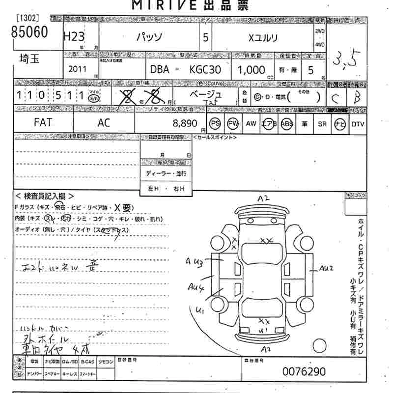 TOYOTA PASSO 2011 г., лот № 85060