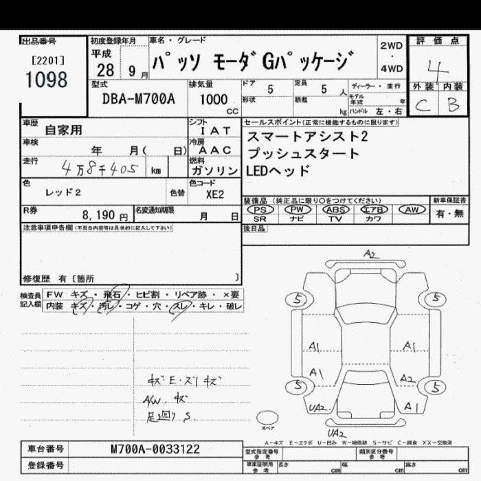 TOYOTA PASSO 2016 г., лот № 1098