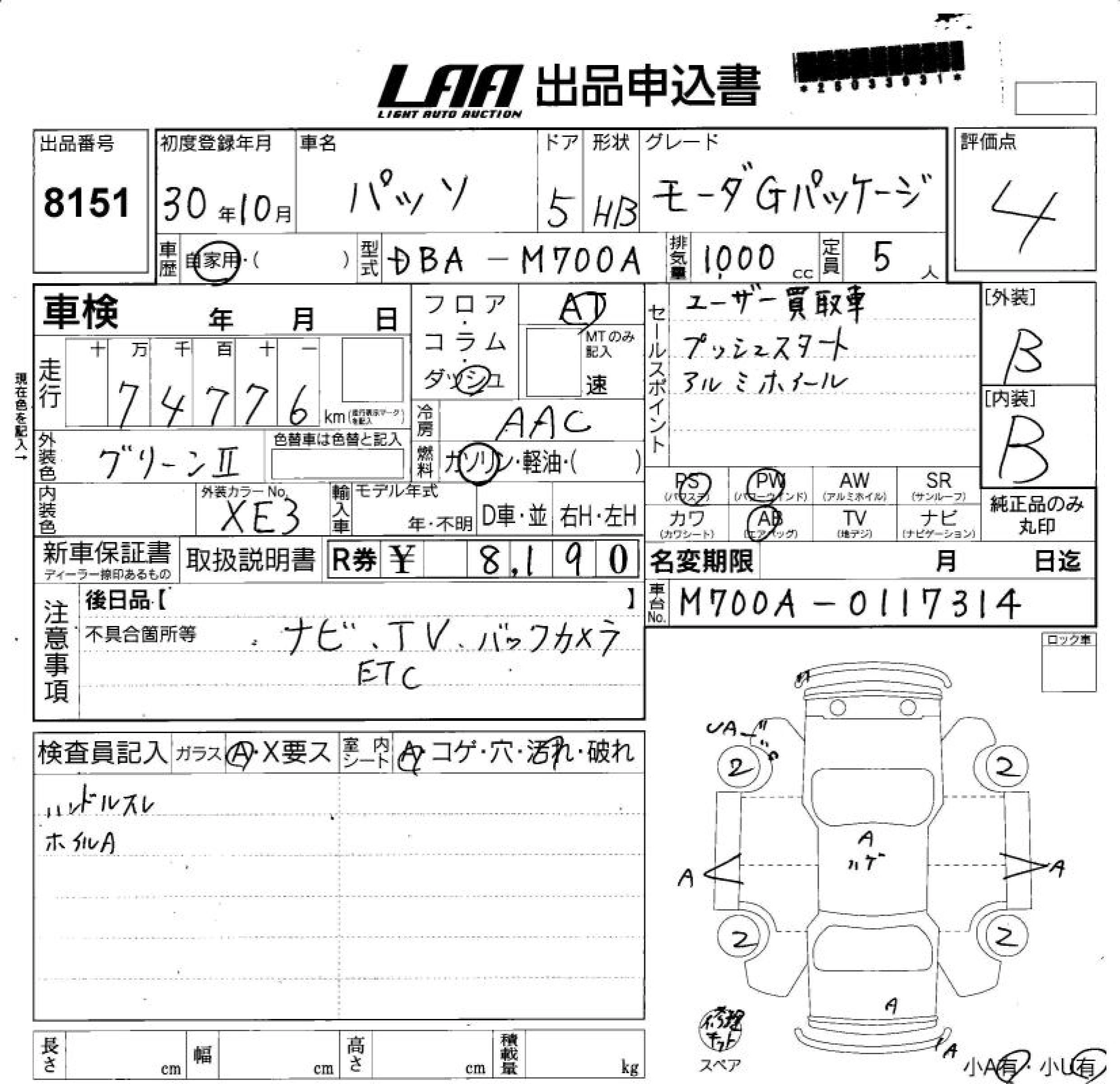 TOYOTA PASSO 2018 г., лот № 8151