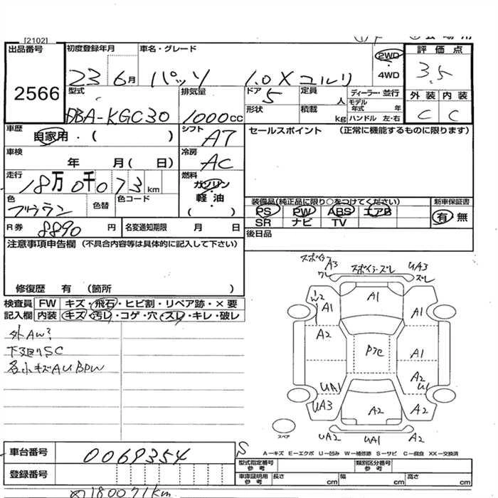 TOYOTA PASSO 2011 г., лот № 2566