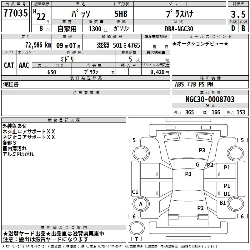 TOYOTA PASSO 2010 г., лот № 77035
