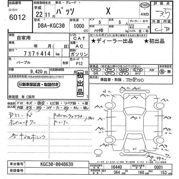 TOYOTA PASSO 2010 г., лот № 6012
