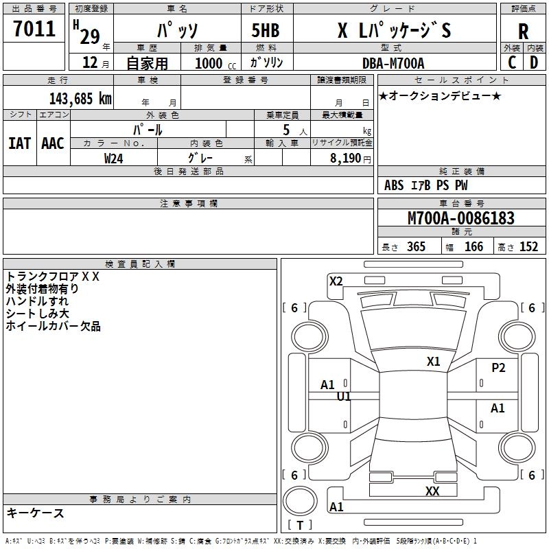 TOYOTA PASSO 2017 г., лот № 7011