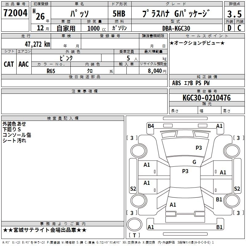 TOYOTA PASSO 2014 г., лот № 72004