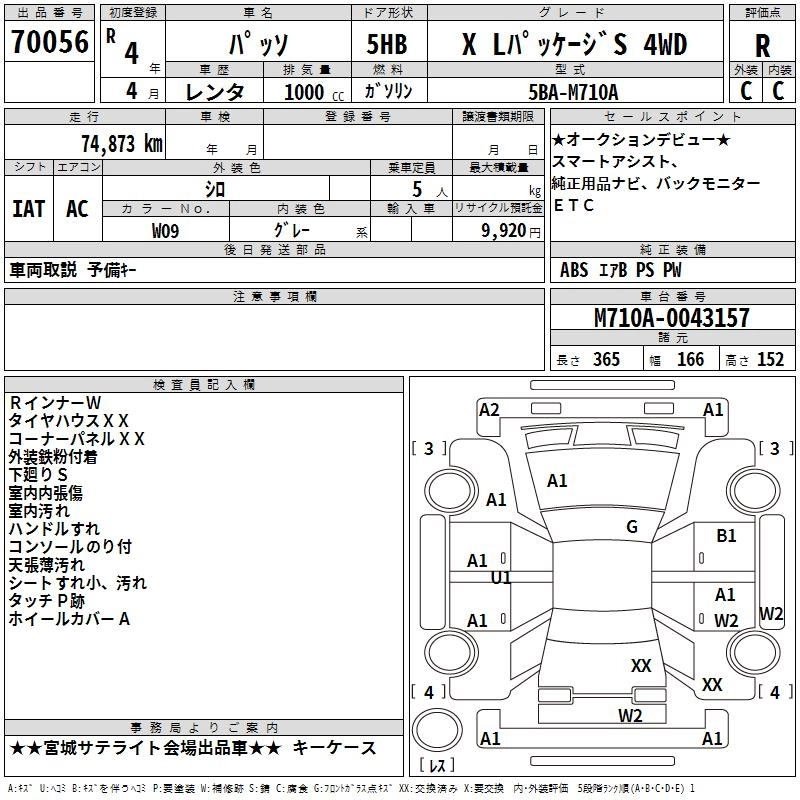 Год выпуска2022 Пробег 75 000 км КузовM710A КомплектацияX L PACKAGE S 4WD