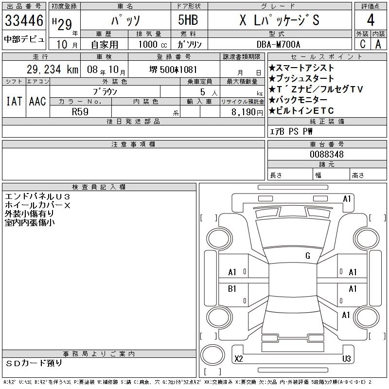TOYOTA PASSO 2017 г., лот № 33446