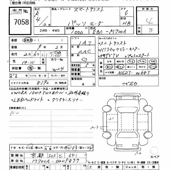 TOYOTA PASSO 2022 г., лот № 7058