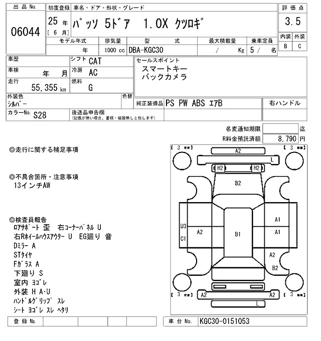 TOYOTA PASSO 2013 г., лот № 6044
