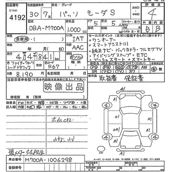 TOYOTA PASSO 2018 г., лот № 4192