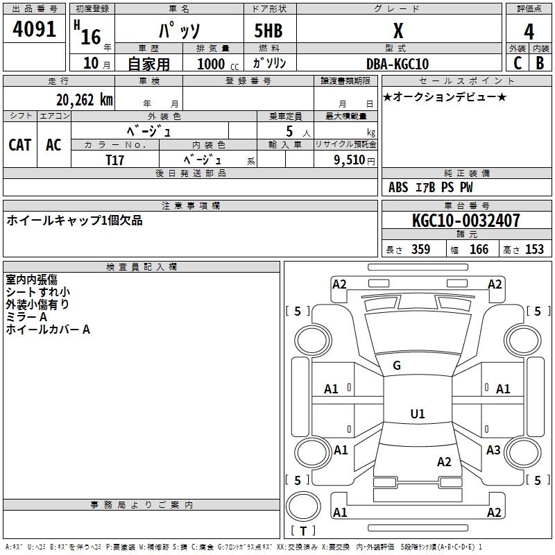TOYOTA PASSO 2004 г., лот № 4091