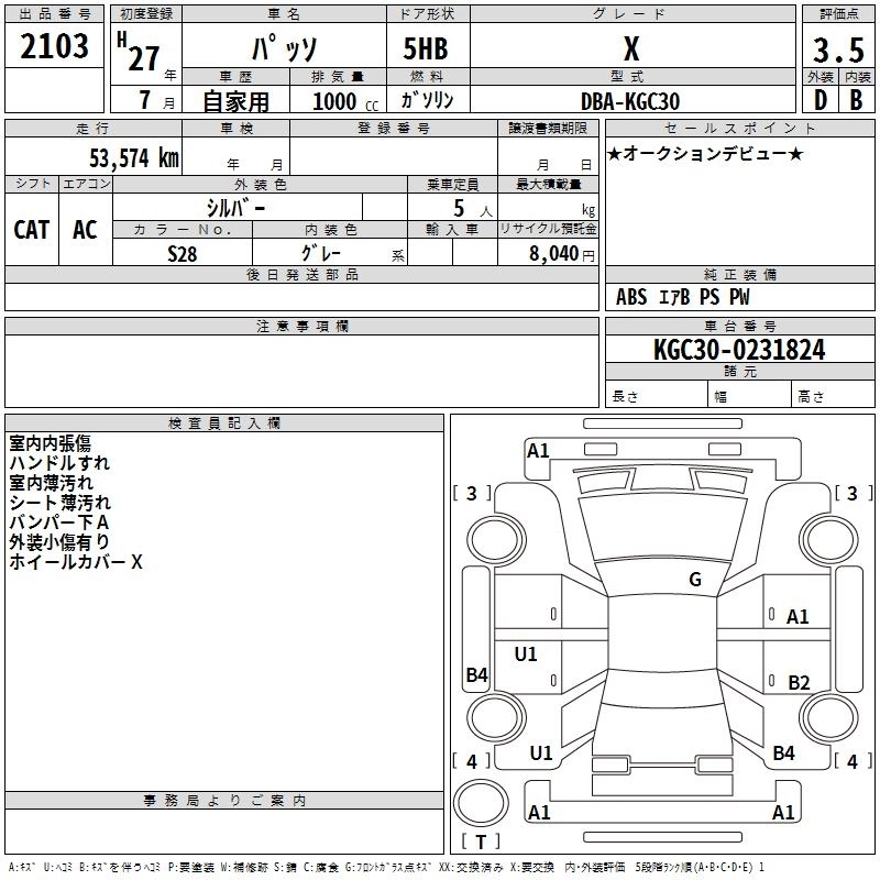 TOYOTA PASSO 2015 г., лот № 2103
