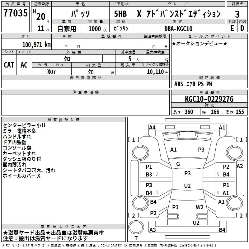 TOYOTA PASSO 2008 г., лот № 77035