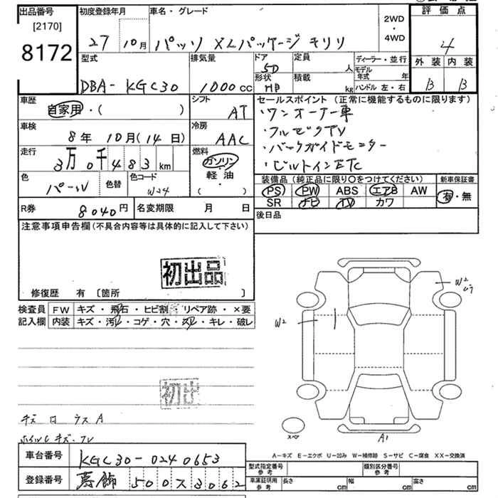 TOYOTA PASSO 2015 г., лот № 8172