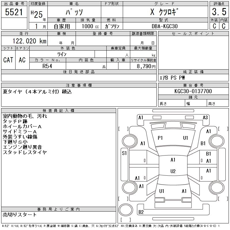 TOYOTA PASSO 2013 г., лот № 5521