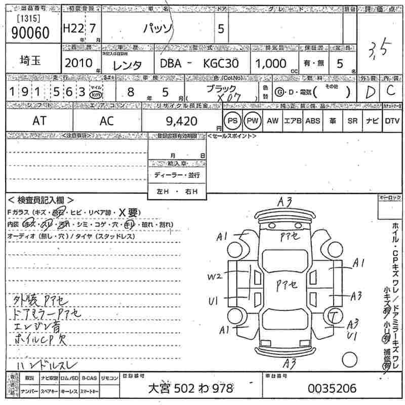 TOYOTA PASSO 2010 г., лот № 90060