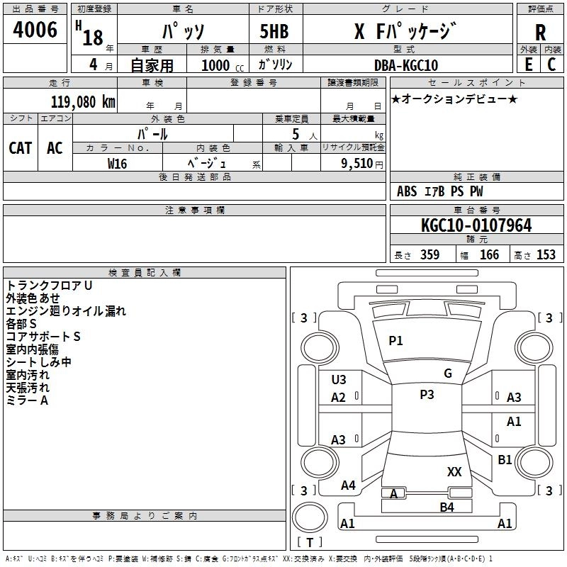 TOYOTA PASSO 2006 г., лот № 4006
