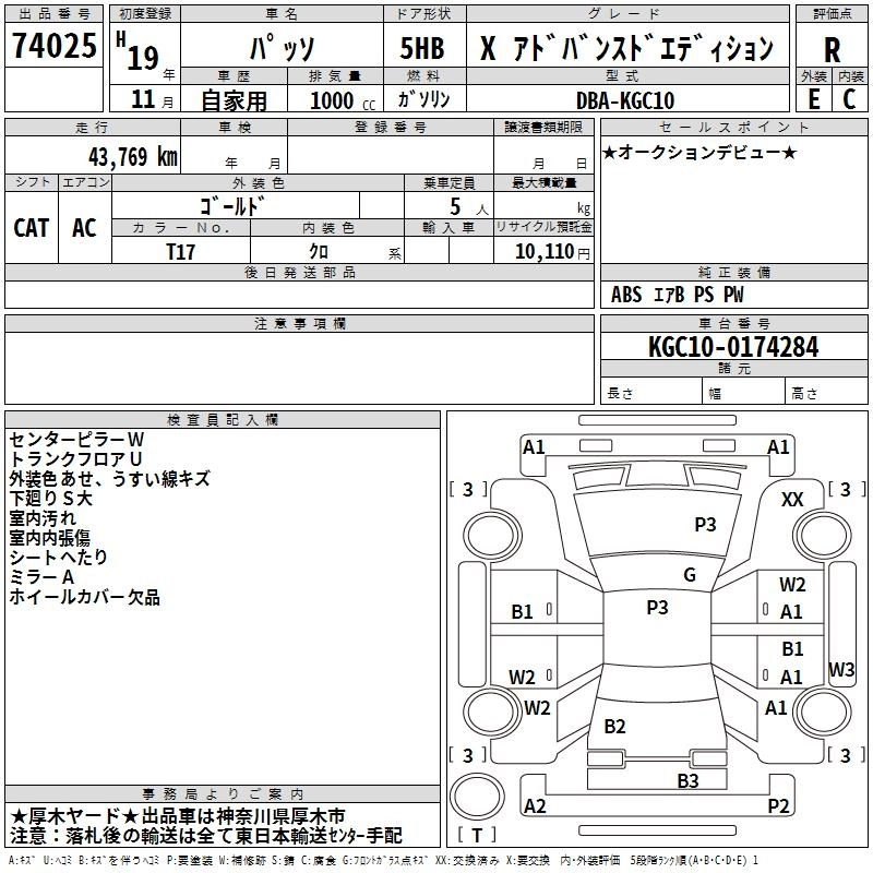 TOYOTA PASSO 2007 г., лот № 74025