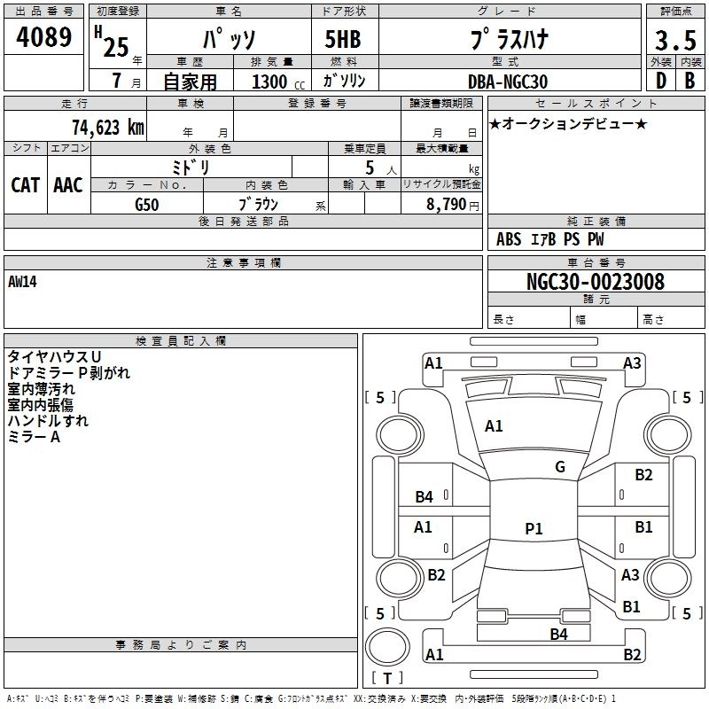TOYOTA PASSO 2013 г., лот № 4089