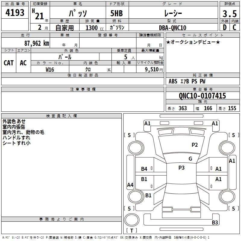 TOYOTA PASSO 2009 г., лот № 4193