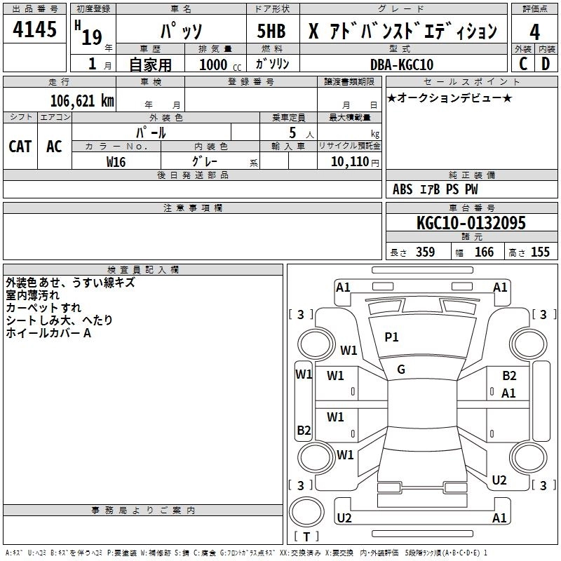 TOYOTA PASSO 2007 г., лот № 4145