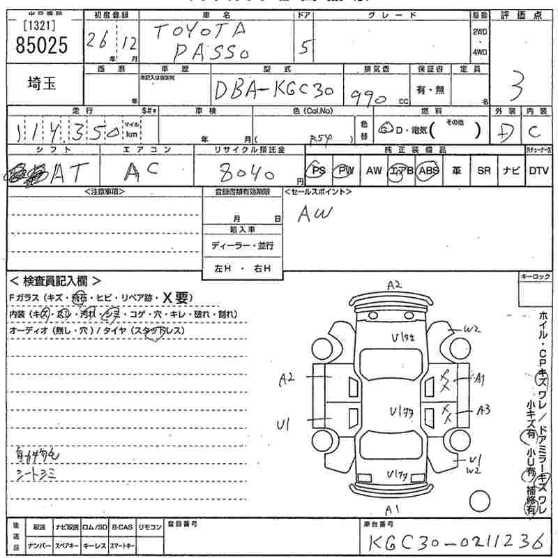 TOYOTA PASSO 2014 г., лот № 85025