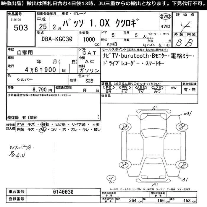 TOYOTA PASSO 2013 г., лот № 503