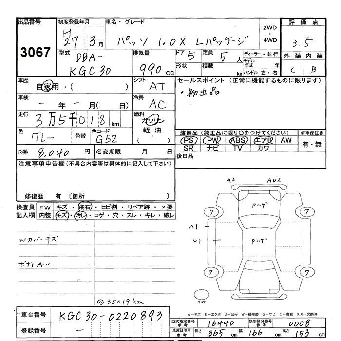 TOYOTA PASSO 2015 г., лот № 3067
