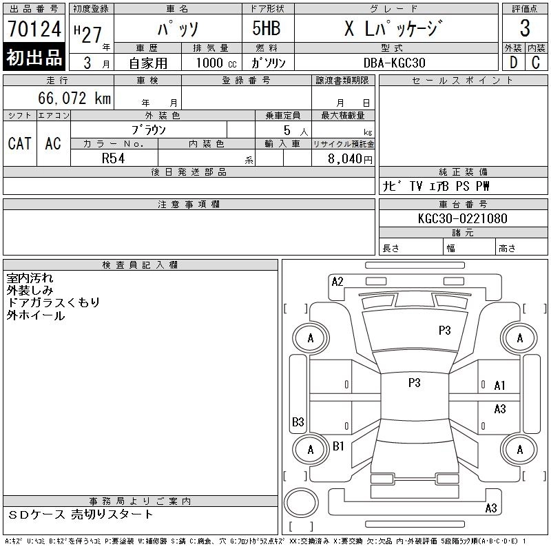 TOYOTA PASSO 2015 г., лот № 70124