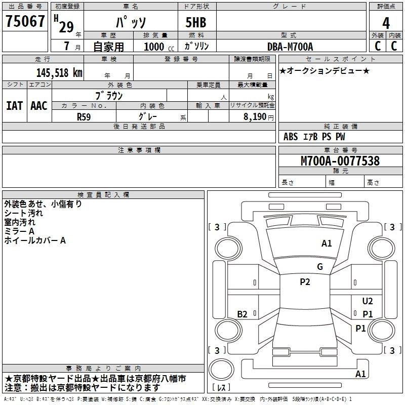 TOYOTA PASSO 2017 г., лот № 75067