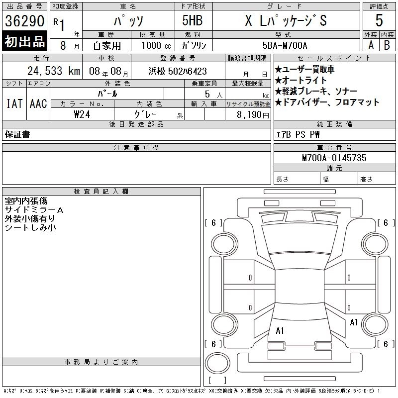 Статус выставлен на аукцион Лот 36290 Аукцион CAA Chubu Дата аукциона 11.03.2026