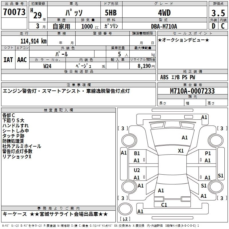 TOYOTA PASSO 2017 г., лот № 70073