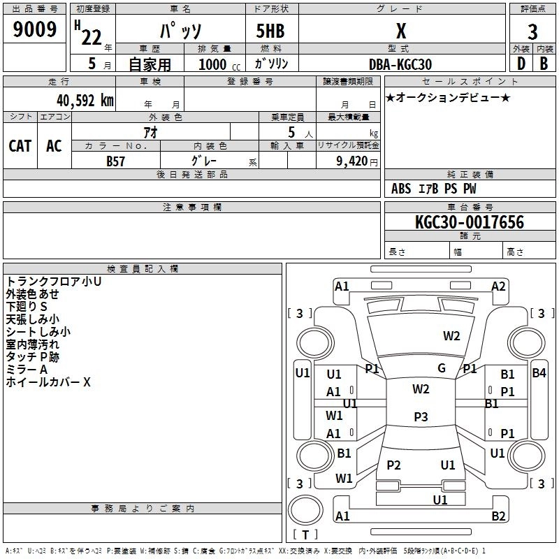TOYOTA PASSO 2010 г., лот № 9009