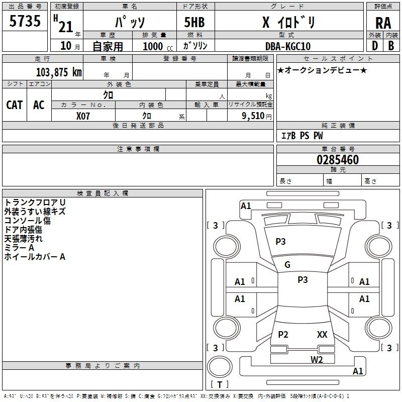 TOYOTA PASSO 2009 г., лот № 5735