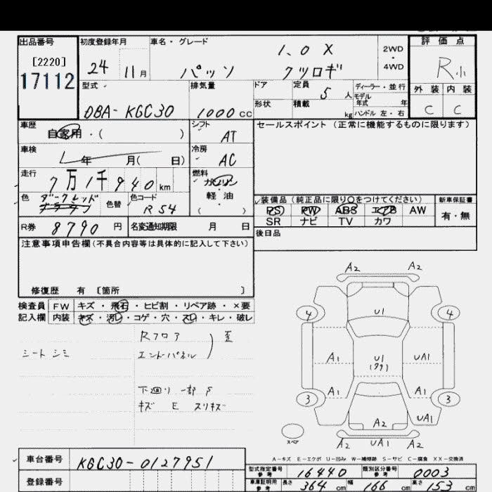 TOYOTA PASSO 2012 г., лот № 17112
