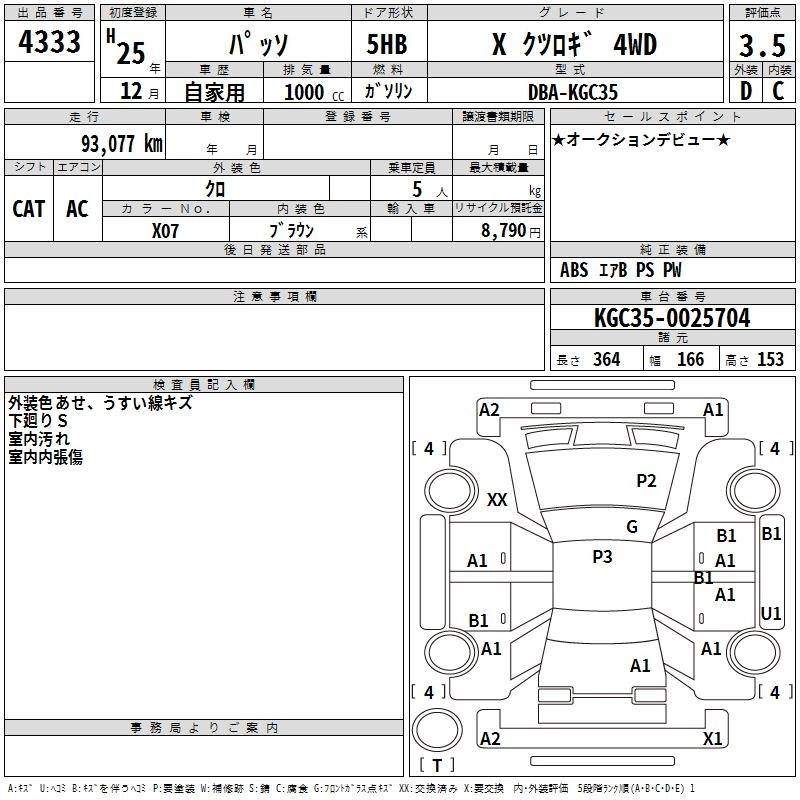 TOYOTA PASSO 2013 г., лот № 4333