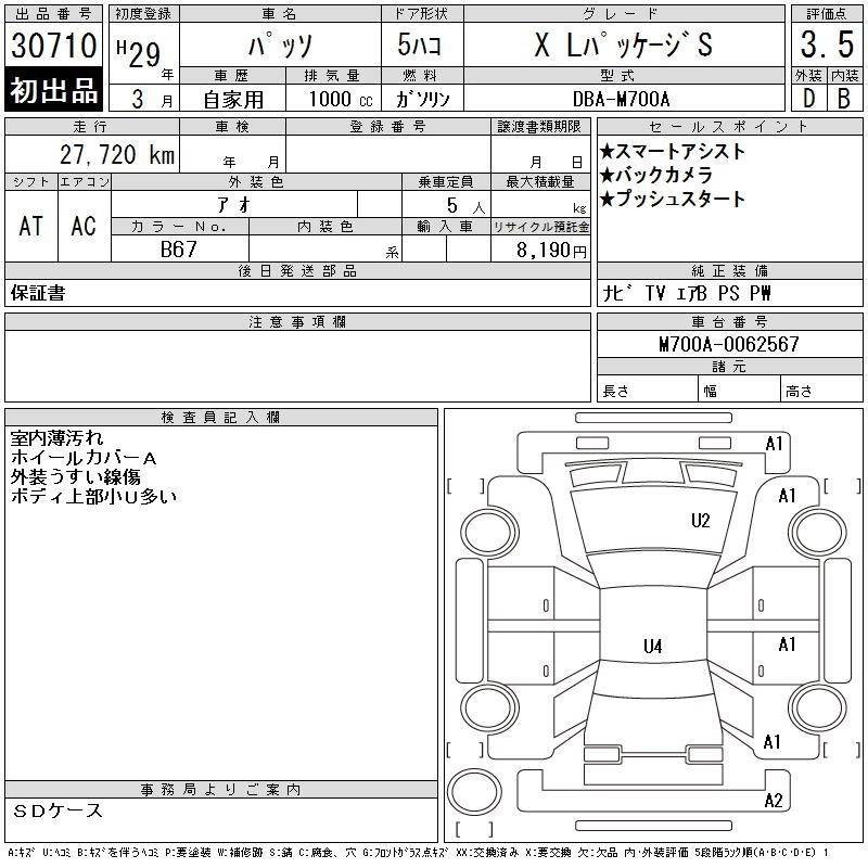 TOYOTA PASSO 2017 г., лот № 30710
