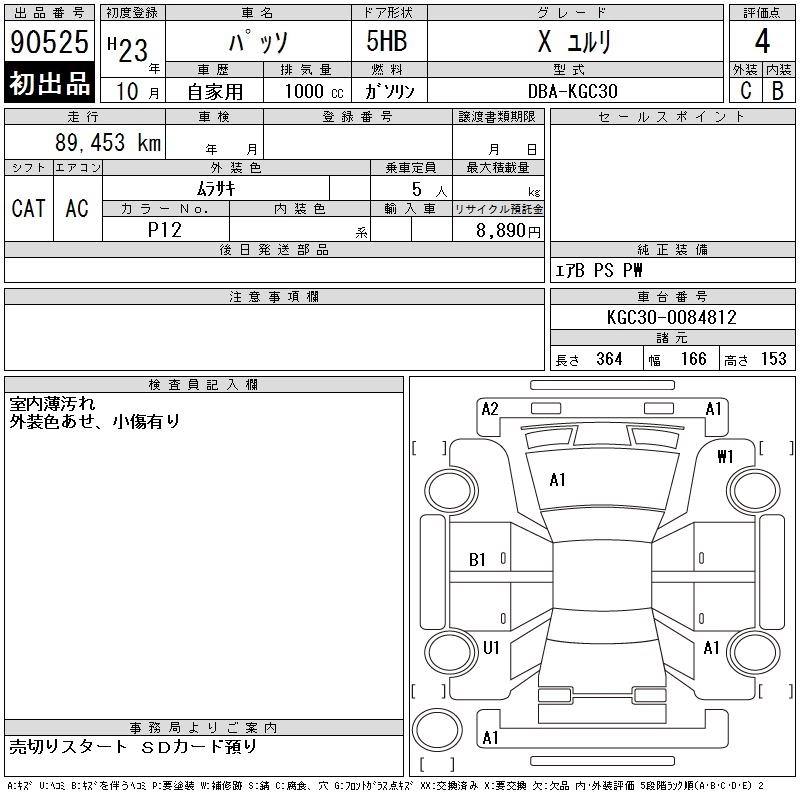 Статус выставлен на аукцион Лот 90525 Аукцион CAA Chubu Дата аукциона 11.03.2026