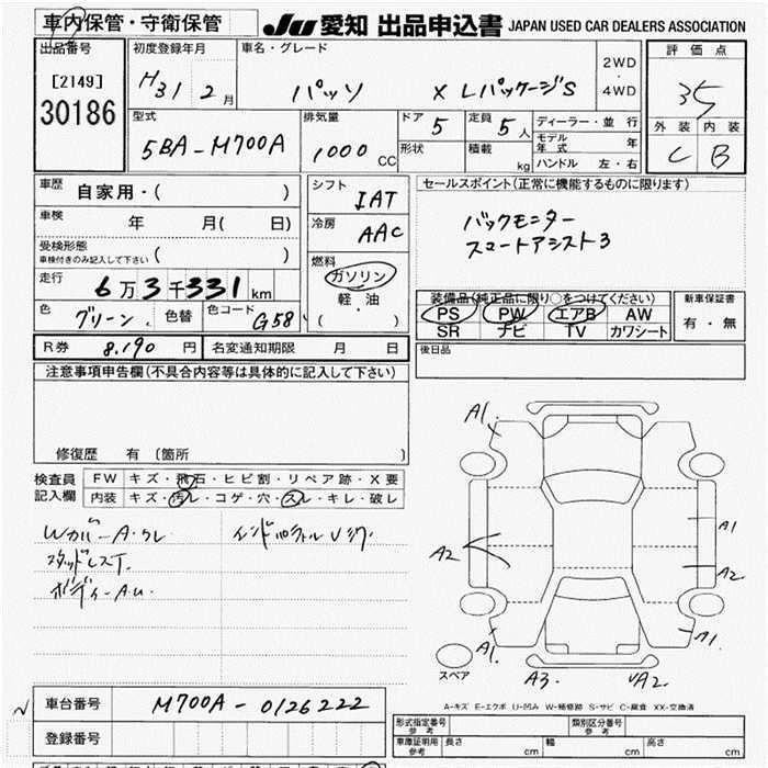 TOYOTA PASSO 2019 г., лот № 30186